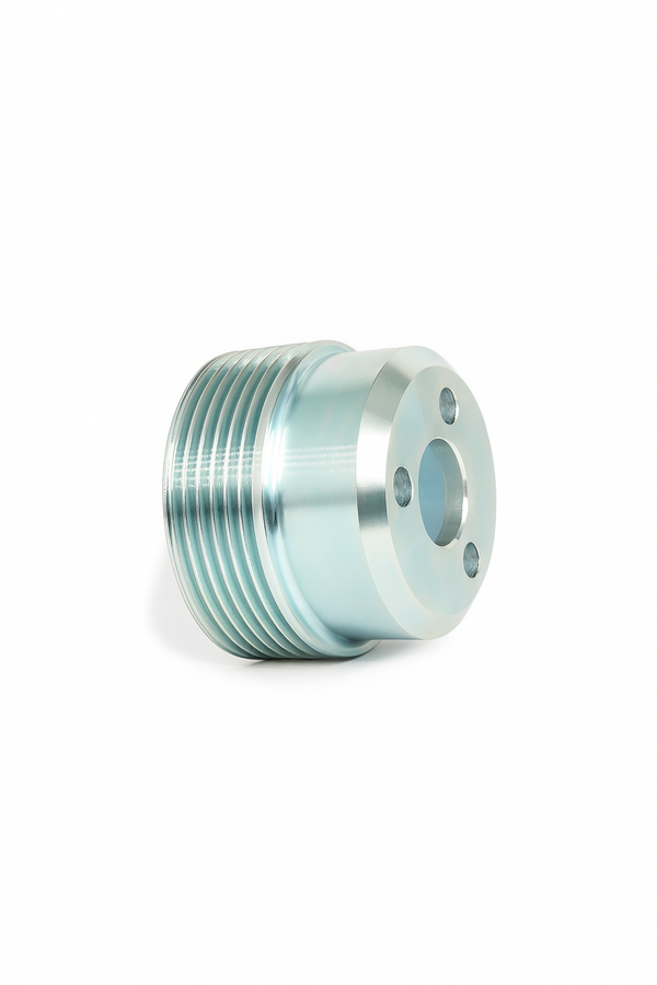 Шкив водяного насоса УМЗ-4216 Евро-4 дюраль 80 мм (уменьшенный) под поликлиновый ремень. Повышает эффективность охлаждения, лёгкий и прочный, снижает нагрузку на вал. Подходит для тюнинга и эксплуатации в жарких условиях.